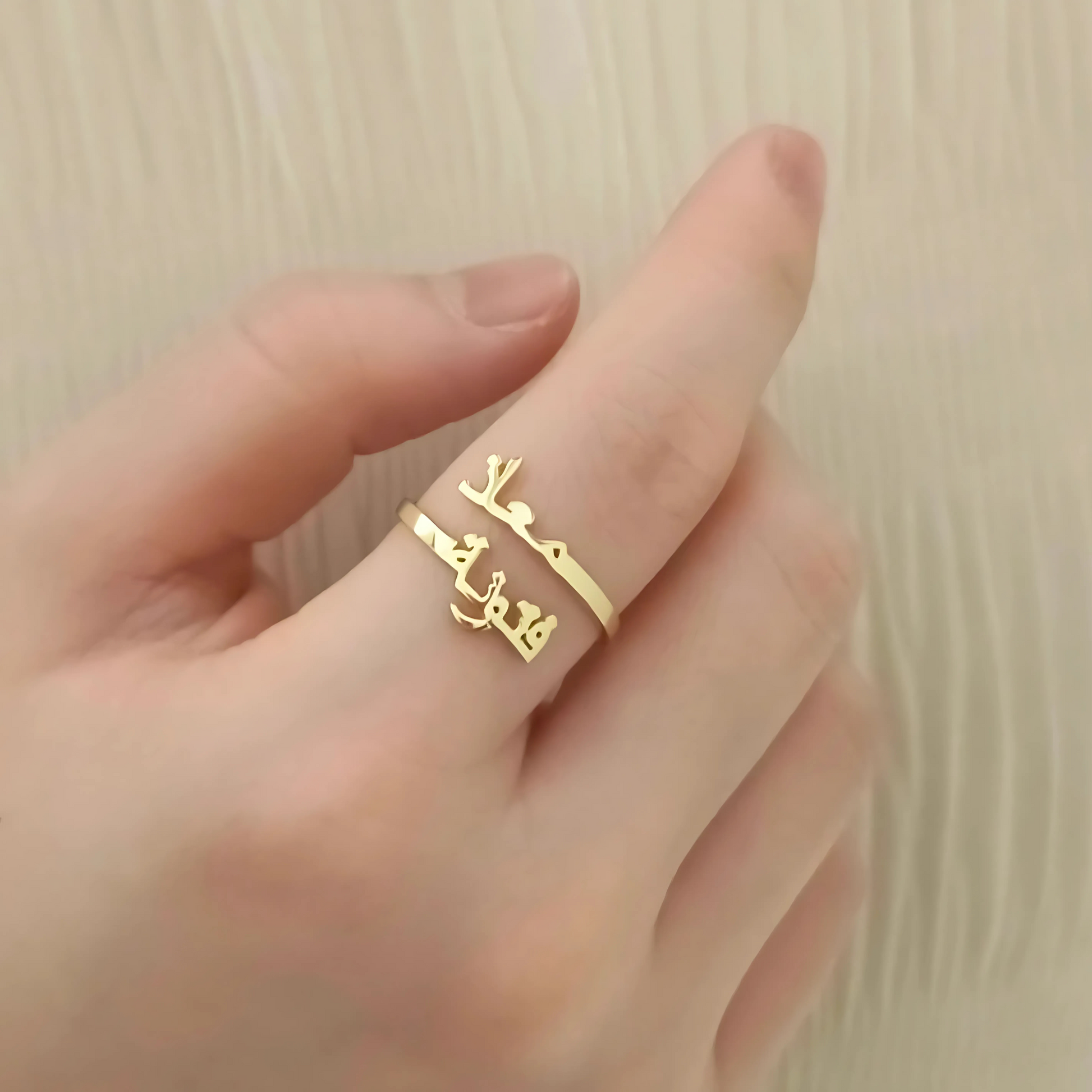 Add a touch of Arabic elegance to your look with our timeless personalized Arabic Name Ring. Inspired by the intricate beauty of Arabic calligraphy, this ring is a stunningly crafted piece that can be customized to make a bold statement. We also offer customization in other languages, so you can create your ring in any script of your choice!
