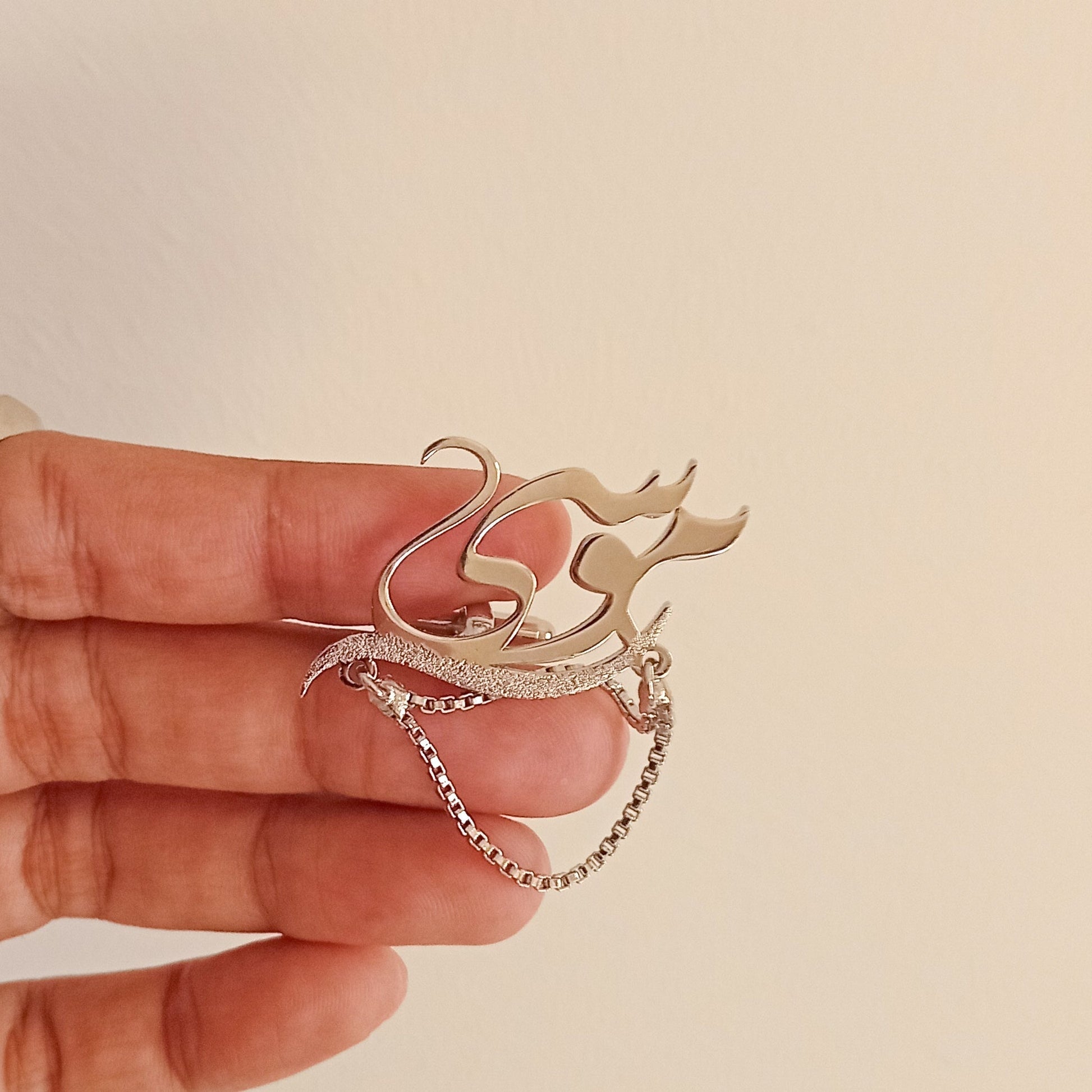 Customized Arabic Name Cufflinks Pair with Chain For Men