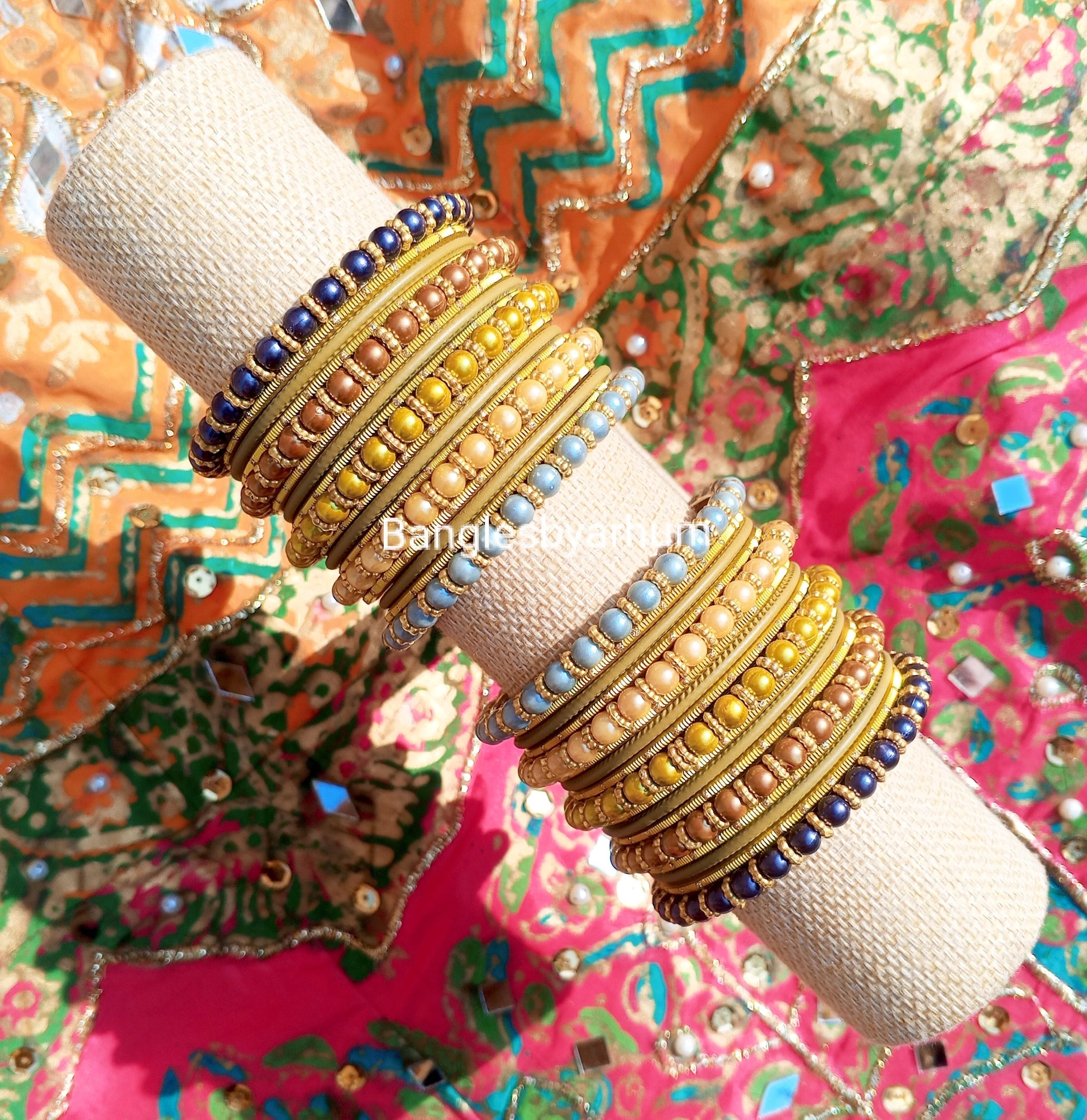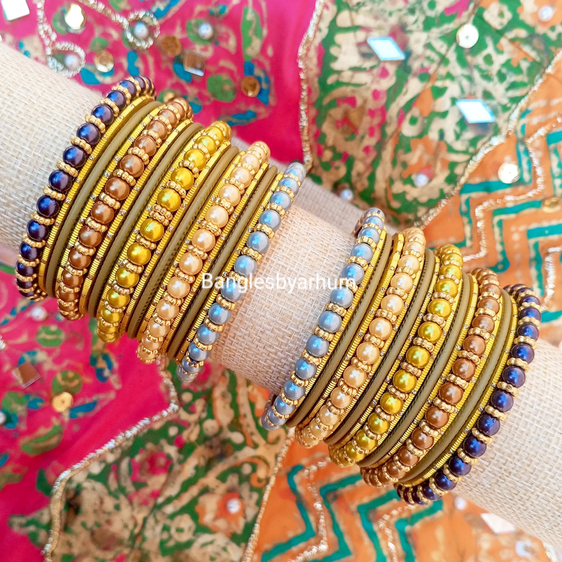 "These lovely pastel color pearl bangles are perfect for adding a soft and charming touch to your outfit. They are beautiful and versatile, making them great for any occasion!"